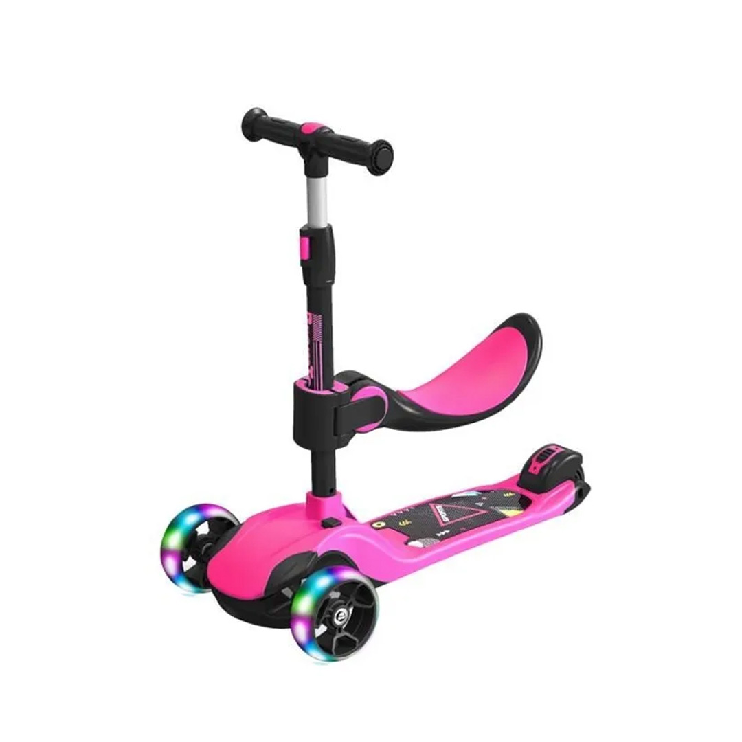 Bremtoy Hulajnoga dziecięca 3 w 1 – z siedziskiem, składana, kolor różowy