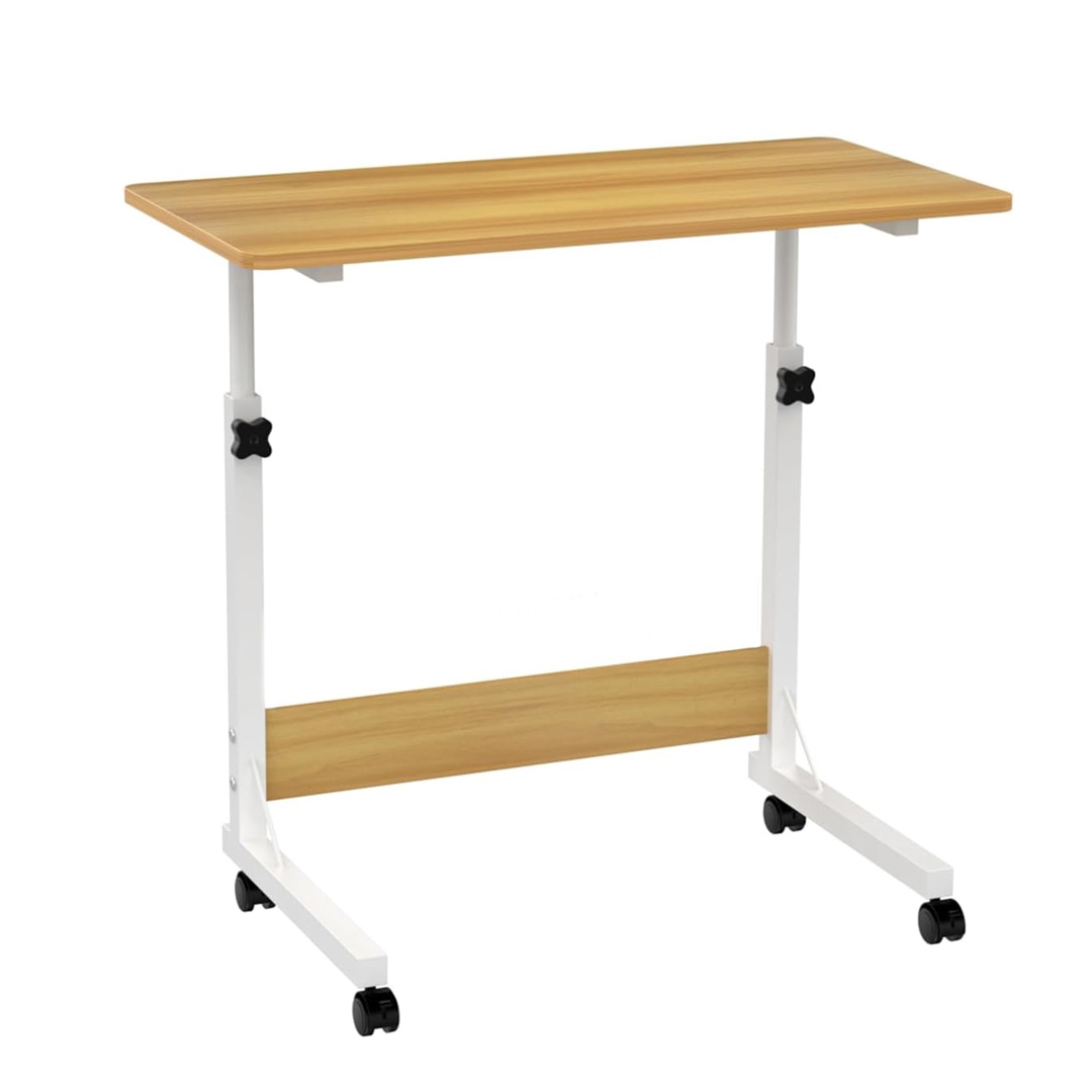 Lvhecforhm Mobilne biurko nad łóżko, regulowana wysokość, na kółkach, 2 półki, do pracy siedzącej i stojącej