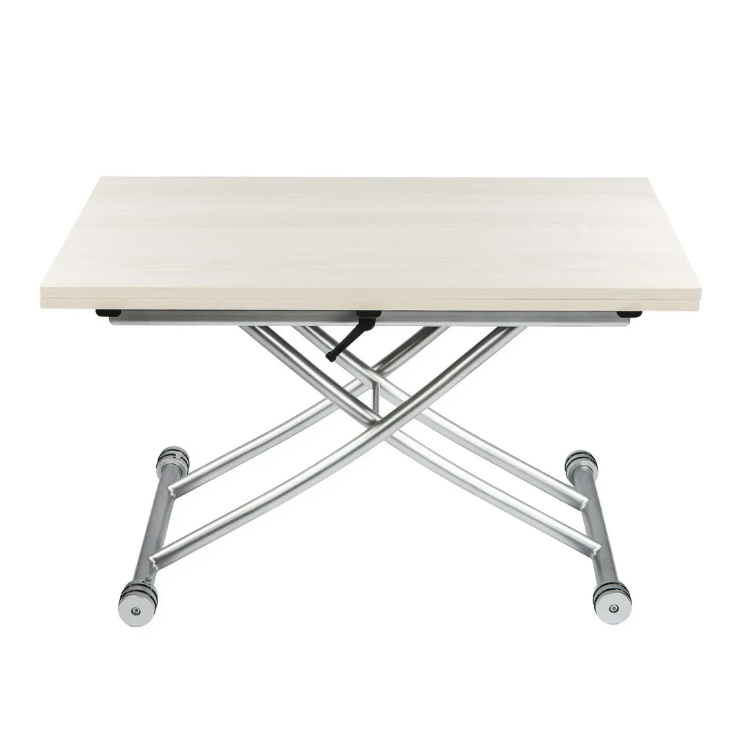 RIM 1 – Multifunkcyjny stolik kawowy, regulowany, rozkładany, kremowy MDF, metalowa podstawa