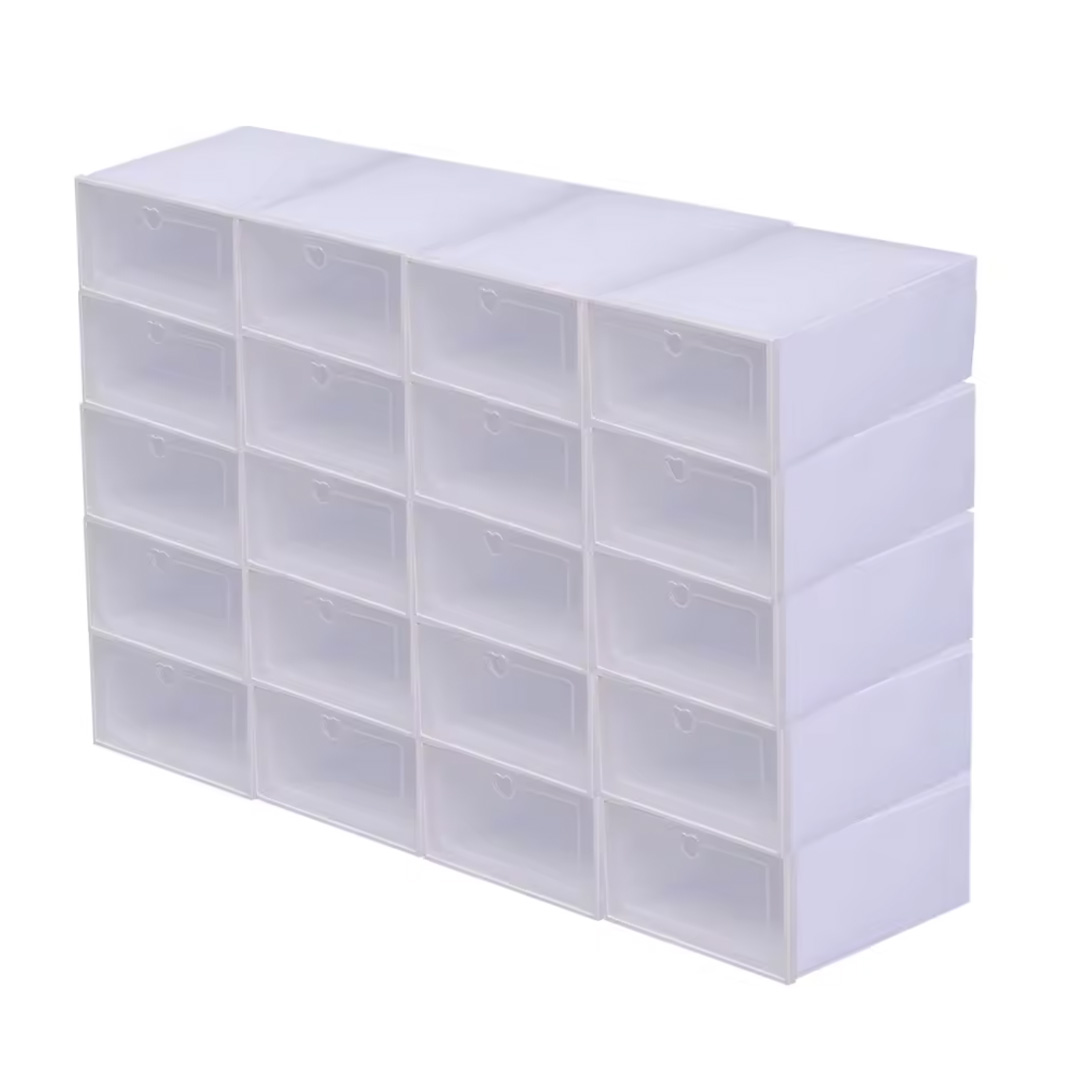 Zestaw 24x przezroczyste pudełko na buty z systemem układania w stosy i szufladą