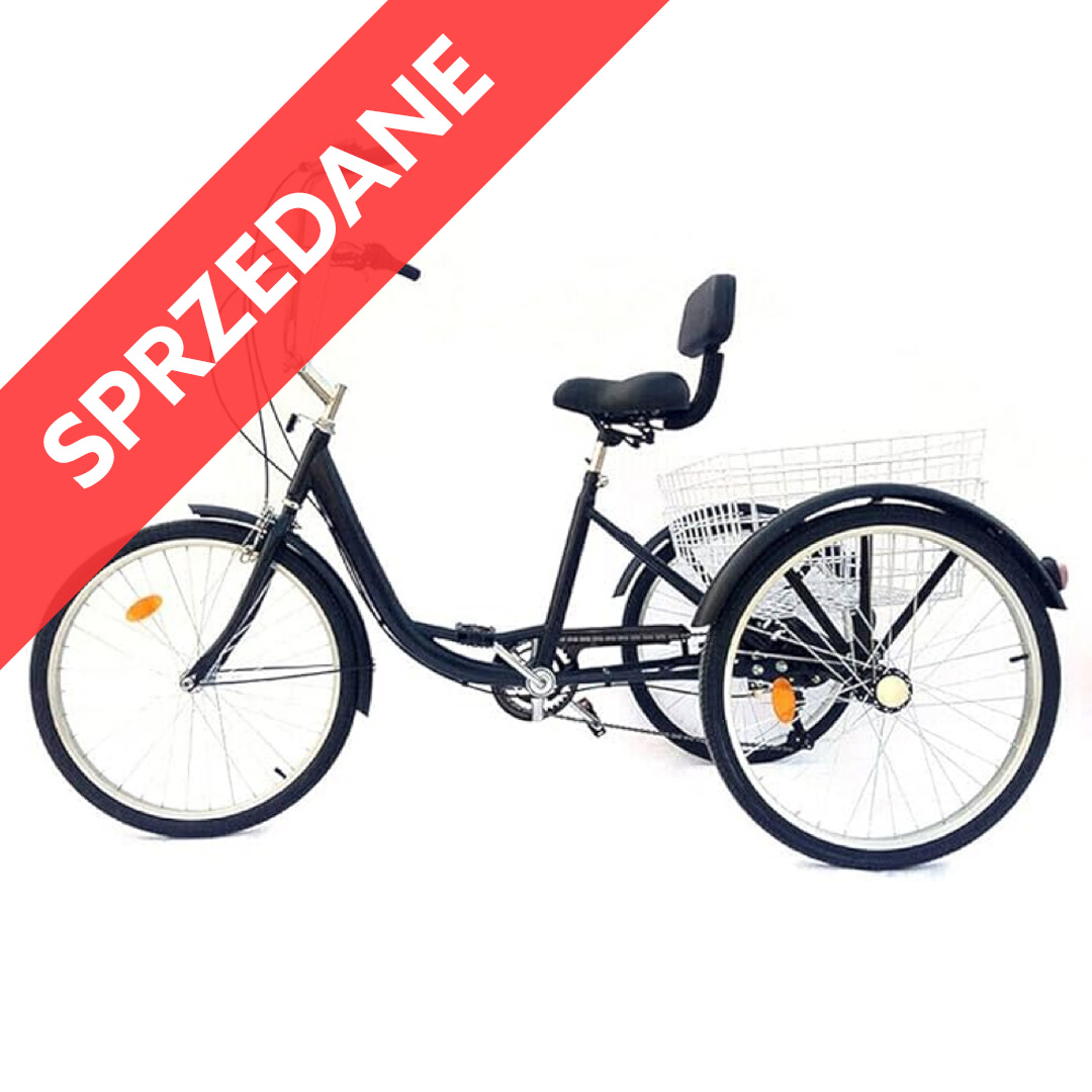 Rower trójkołowy 20 cali – 6-biegowy, dla dorosłych i seniorów, z koszem, kolor czarny