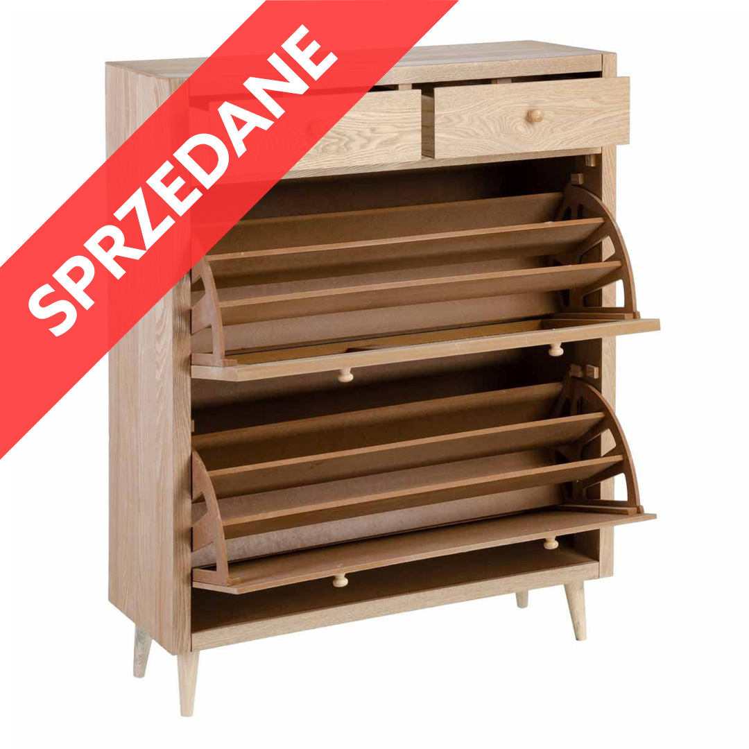 Szafka na buty– wykończenie drewno i rattan, idealna do przedpokoju, kompaktowe wymiary