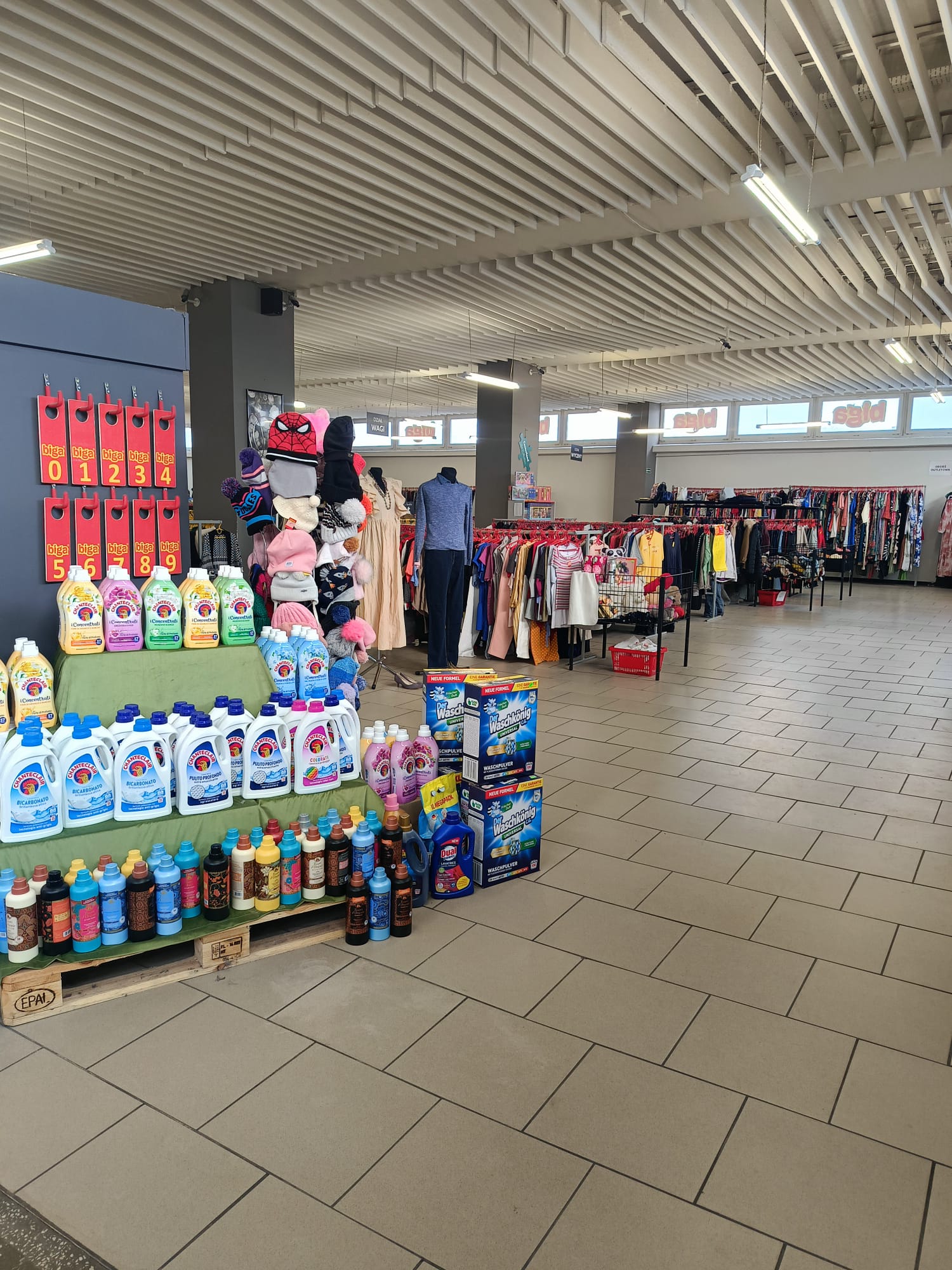 Outlet Biga w Staszowie oferuje odzież damską, męską i dziecięcą z podziałem na towar wyceniony oraz sprzedawany na kilogramy. Asortyment jest wyeksponowany na wieszakach i ułożony tematycznymi działami, jak spodnie, kurtki, swetry, koszule, sukienki itd. Każda kategoria ma swoje oznaczenie, dzięki czemu klienci mogą w łatwy i szybki sposób odnaleźć interesujący ich towar. Bogaty wybór odzieży na każdą okazję pozwala na nieograniczone możliwości w dobieraniu i miksowaniu stylizacji. Oprócz odzieży secondhand Biga Staszów oferuje także duży wybór dodatków. Odpowiednie nakrycie głowy, elegancka torebka, kolorowa apaszka, efektowny krawat czy oryginalny pasek – trudno sobie wyobrazić kompletny outfit bez tych elementów. Podobnie, jak bez unikatowej biżuterii, jaką można kupić w najlepszym sklepie odzieżowym w Staszowie. Niepowtarzalne kolczyki, zegarki, naszyjniki, a nawet ozdoby do włosów, które idealnie dopełnią każdą stylizację. Perfekcyjnym zwieńczeniem zakupów będzie z pewnością wyjątkowa kolekcja obuwia. Od eleganckich szpilek czy kozaków, przez wygodne botki i baleriny, aż po sportowe buty znanych marek, jak Adidas, Nike, Puma i wiele innych. Outlet Biga to wyjątkowe miejsce, które pokochają także najmłodsi klienci! Zachwycają nie tylko kolorowe ubrania, ale również duży wybór zabawek oraz dziecięcych akcesoriów. Osobny dział na sali sprzedażowej zajmują artykuły domowe, które pozwolą klientom zadbać także o styl mieszkania. Pościel, firany, zasłony, ręczniki i – zaskakują niskimi cenami i wyjątkową jakością. Osoby noszące rozmiar plus size ucieszą się z wyodrębnionej strefy z odzieżą XXL. Oferta obejmuje także kolekcje outletowe – pełne znanych marek oraz propozycji od słynnych światowych projektantów