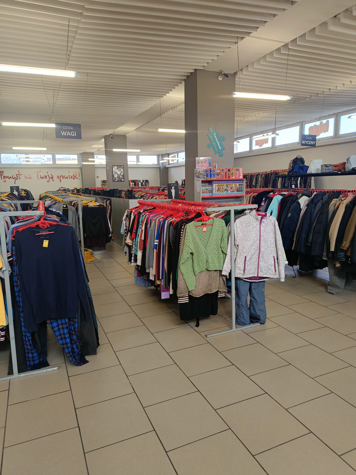 Najlepszy secondhand w Staszowie zajmuje przestronną salę o metrażu 350 m2. Wnętrze zdominowane jest przez jasne kolory, które przełamane zostały energetyzującymi czerwonymi akcentami, dzięki czemu wygląda wyjątkowo stylowo. Liczne okna dodatkowo rozświetlają lokal, zapewniając komfortowe zakupy. Po przeprowadzce działa sklep w nowym miejscu od 2019 – w pawilonie „GS Jędrek”. Lokal znajduje się na pierwszym piętrze budynku, w którym na parterze funkcjonuje sklep spożywczy i wielobranżowy. W pobliżu znajduje się stacja paliw Orlen.